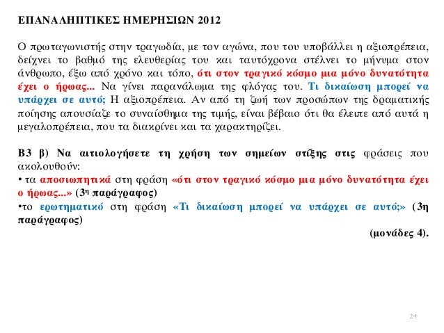 - να αναφέρει γνωμικό ή παροιμία.