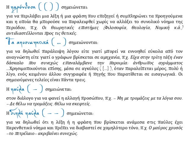 Ό,τι περικλείεται σε διπλή παύλα είναι συνήθως απαραίτητο για τη νοηματική πληρότη