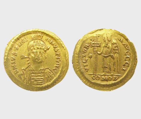 - Ουίτιγις, ηγεμόνας των Οστρογότθων, 536-540, σόλιδος στο όνομα του αυτοκράτορα Ιουστινιανού Α΄. NM 462/1999.
